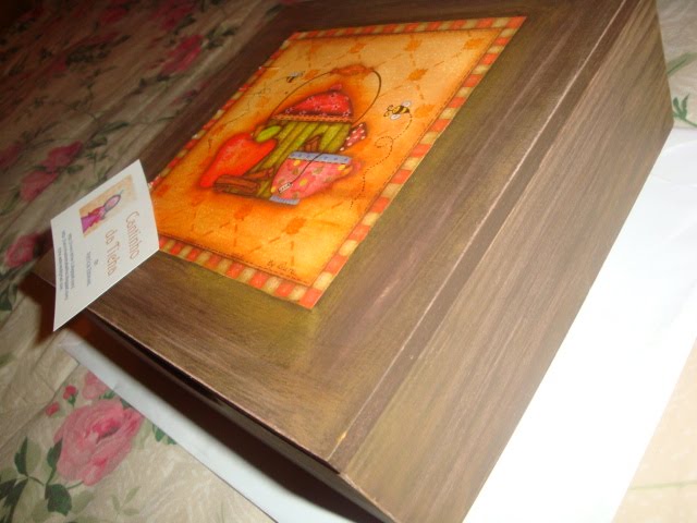 Ontem, eu fiz uma caixa com decoupage e uma caixa para forrar um tecido :