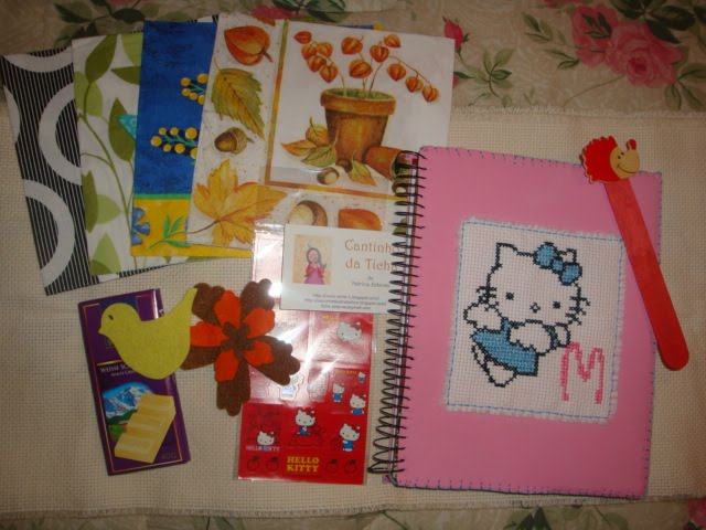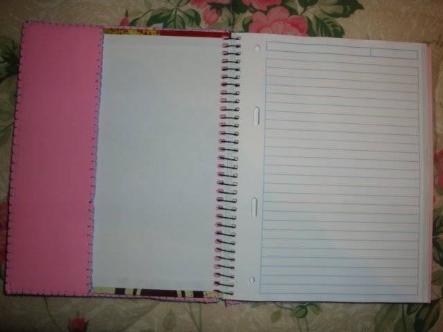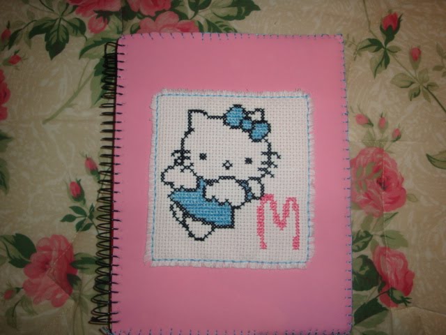 Eu fiz um caderno com bordado Hello Kity e letra M e foi a minha 1ª experência.