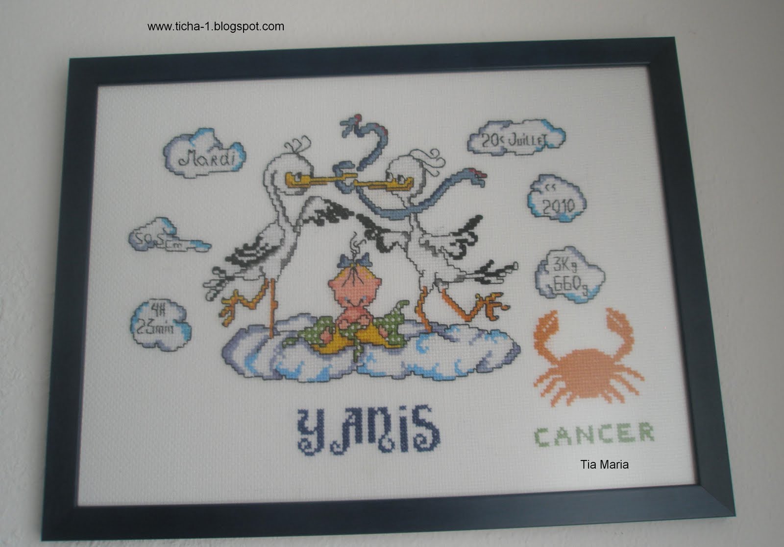 Olá Ticha, ficou fantástico.Parabéns à tua tia:) Acha que ela me posso arranjar o gráfico?? Tenho que fazer um quadro de nascimento e este é lindo:) Beijinhos