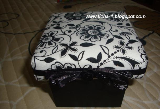 Fiz uma caixa com tecido para oferecer á minha prima. Aqui está uma caixa: