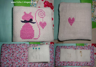 Bordei um gato e fiz uma porta-alfinetes/agulhas. Ela disse que adorou. Fiquei contente :D