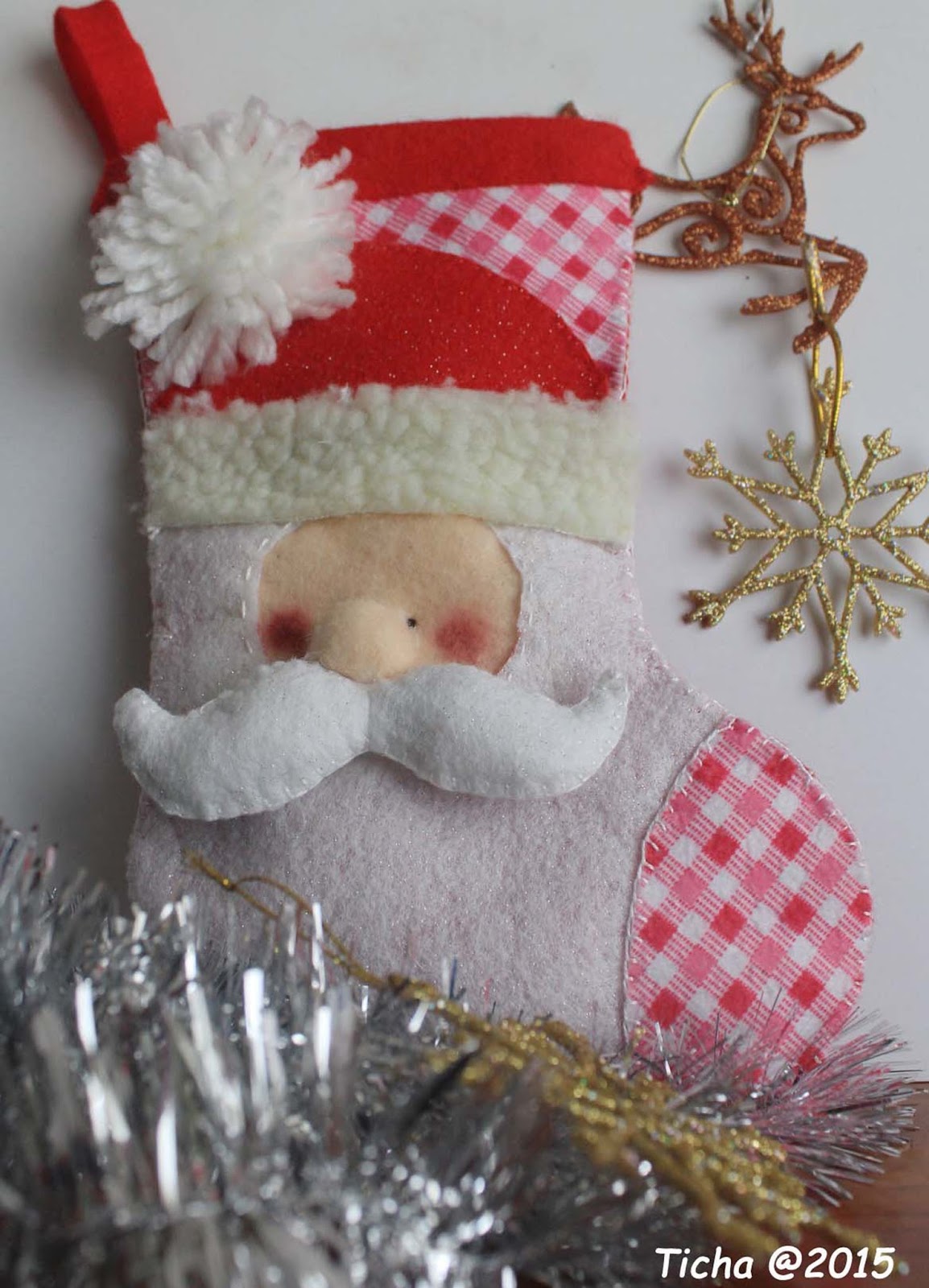 Fiz um Pai Natal em feltro e achei que está a ficar fofinho.