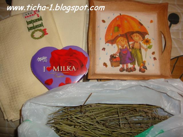 Fiz um pano de cozinha e um tabuleiro com decoupage. Ela disse que gostou e fiquei contente :)