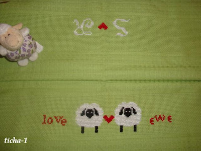 Eu fiz um pano de cozinha para oferecer aos noivos